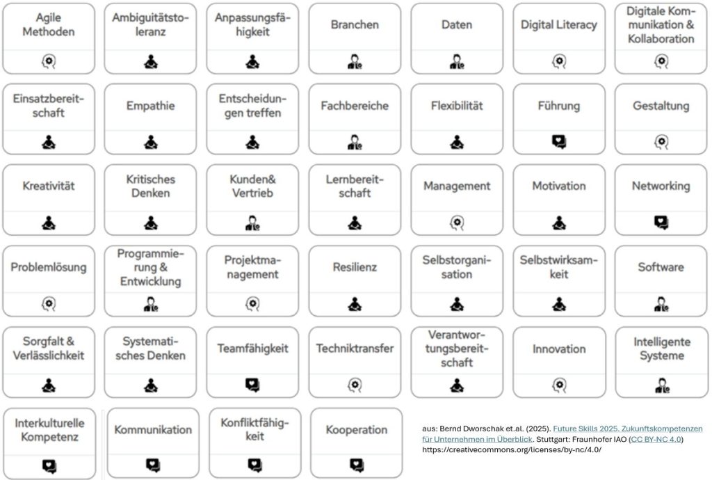 - Bernd Dworschak et.al. (2025). Future Skills 2025. Zukunftskompetenzen für Unternehmen im Überblick. Stuttgart: Fraunhofer IAO (CC BY-NC 4.0)